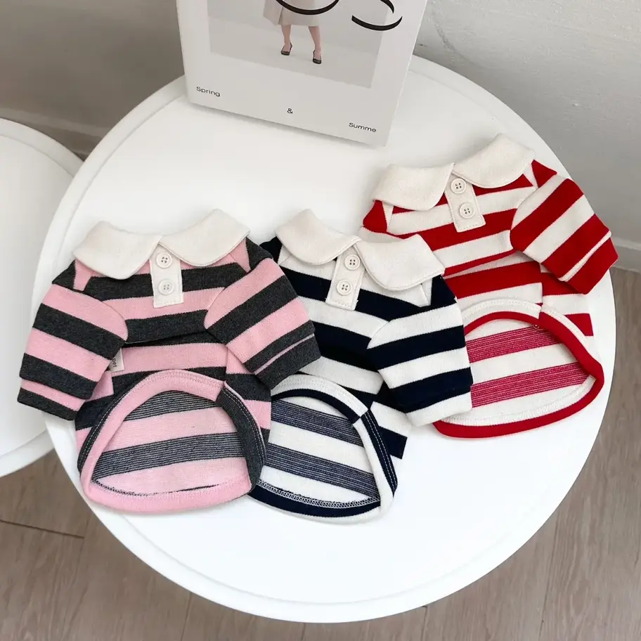 韓国 3色 襟 シャツ ストライプ ペット服 ペット洋服